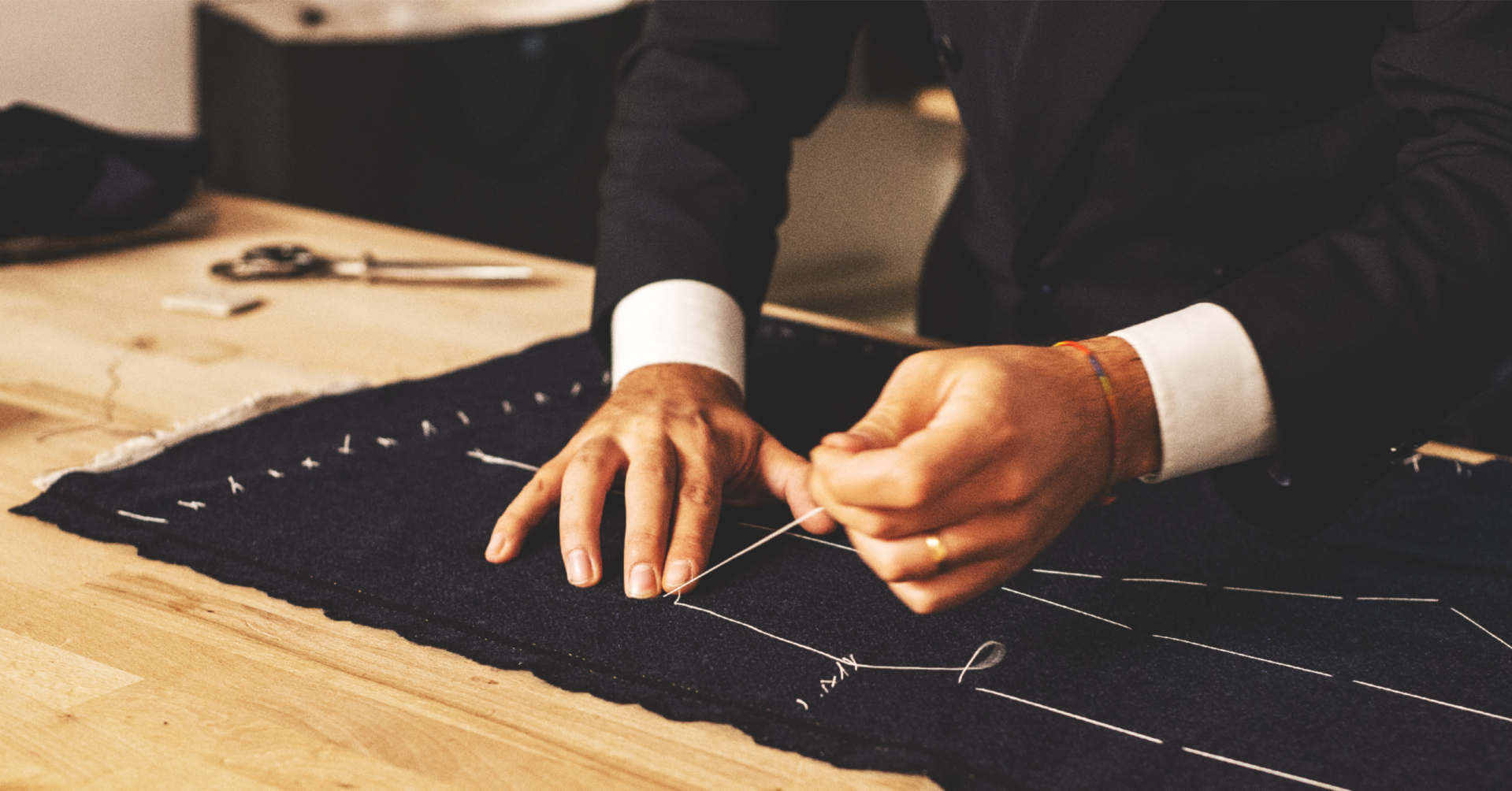 Ogni capo è frutto di un processo accurato, che inizia con una consulenza personalizzata e la selezione di tessuti di alta qualità. Si prosegue con la creazione del modello, il trasferimento delle linee guida sul tessuto mediante il tradizionale gesso, seguito dal taglio, dall'imbastitura, e dalla cura scrupolosa delle prove, fino alla realizzazione finale.
